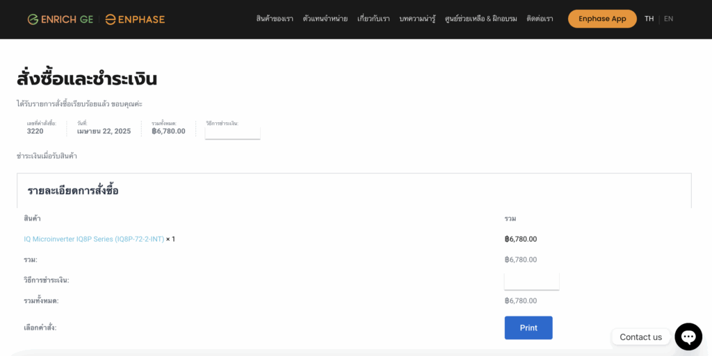 7.หลังชำระเงินและกดสั่งซื้อเรียบร้อยแล้ว ระบบจะแสดงรายละเอียดคำสั่งซื้อ และที่อยู่สำหรับการออกใบเสร็จรับเงิน