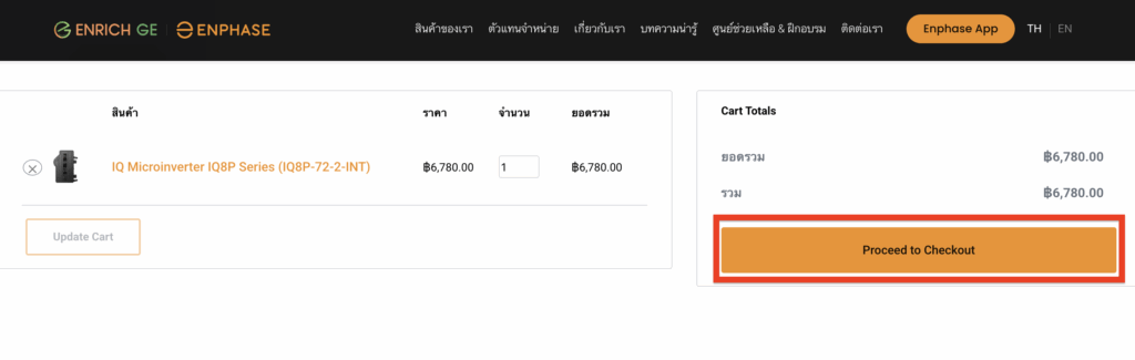 4. ตรวจสอบรายการสินค้า จำนวนและยอดรวม จากนั้นกด “Proceed to Checkout”