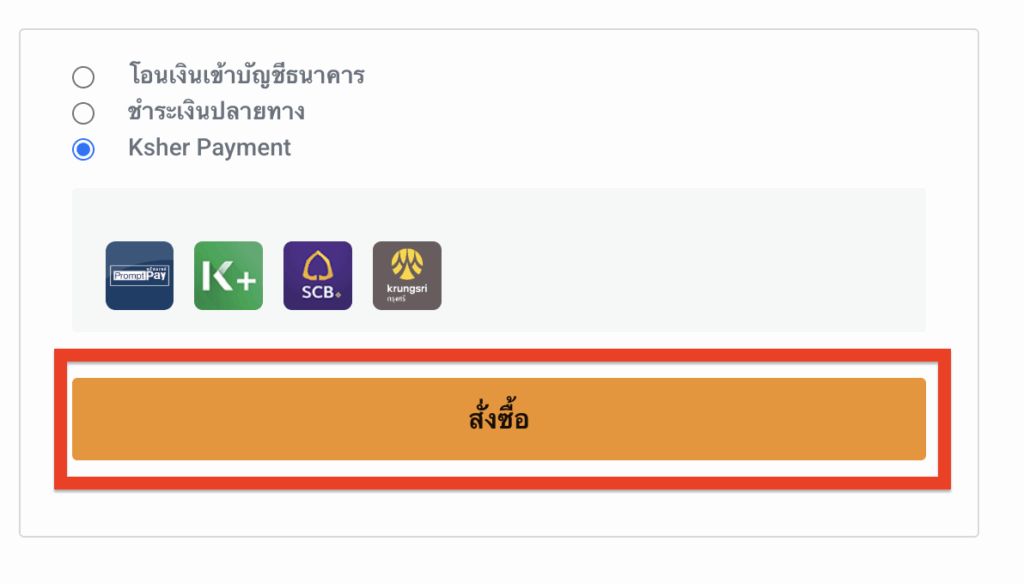 6. เลือกวิธีการชำระเงินและกดสั่งซื้อ